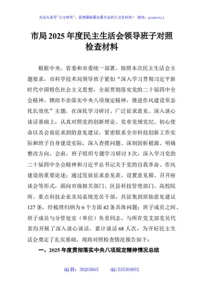 / 市局2025年度民主生活会领导班子对照检查材料