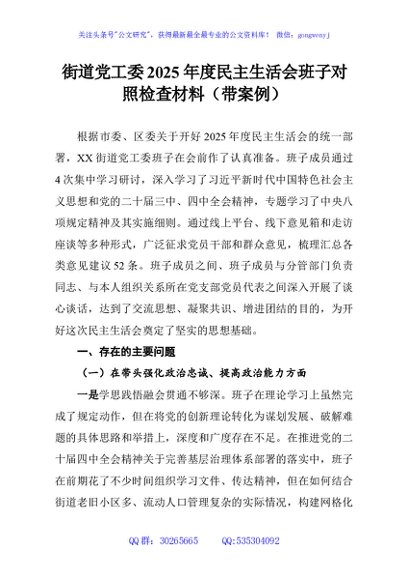 / 街道党工委2025年度民主生活会班子对照检查材料(带案例)
