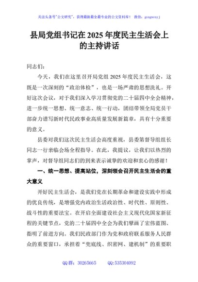 / 县局党组书记在2025年度民主生活会上的主持讲话