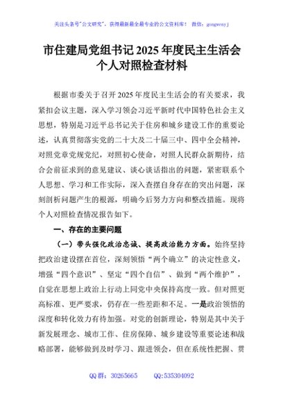 / 市住建局党组书记2025年度民主生活会个人对照检查材料