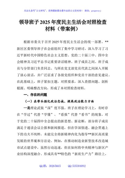 / 领导班子2025年度民主生活会对照检查材料(带案例)