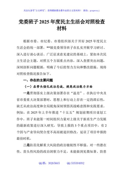 领导班子2025年度民主生活会对照检查材料(带案例)