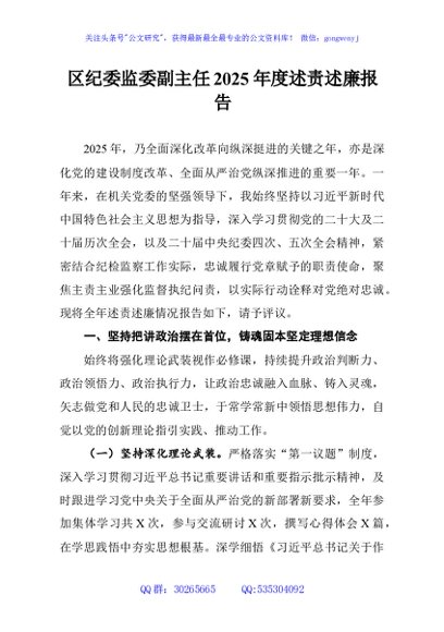 / 区纪委监委副主任2025年度述责述廉报告
