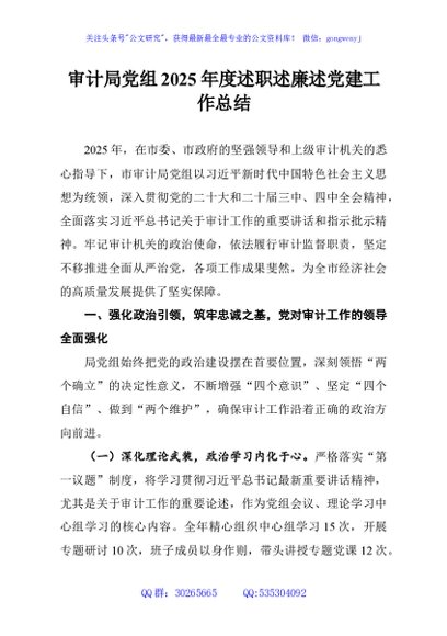/ 审计局党组2025年度述职述廉述党建工作总结