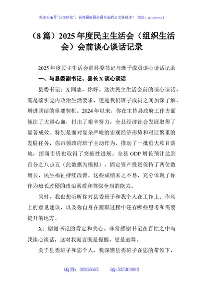 / (8篇)2025年度民主生活会(组织生活会)会前谈心谈话记录