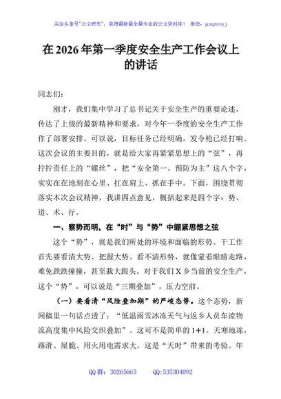 / 在2026年第一季度安全生产工作会议上的讲话