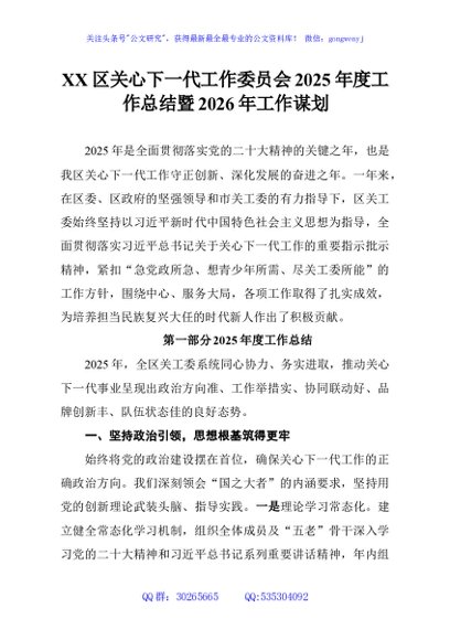 / XX区关心下一代工作委员会2025年度工作总结暨2026年工作谋划