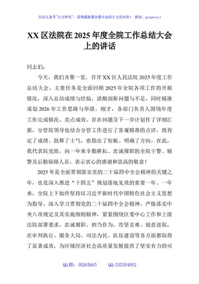 / XX区法院在2025年度全院工作总结大会上的讲话