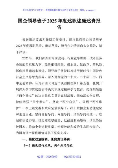 / 国企领导班子2025年度述职述廉述责报告