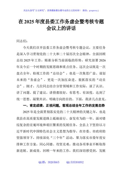 / 在2025年度县委工作务虚会暨考核专题会议上的讲话