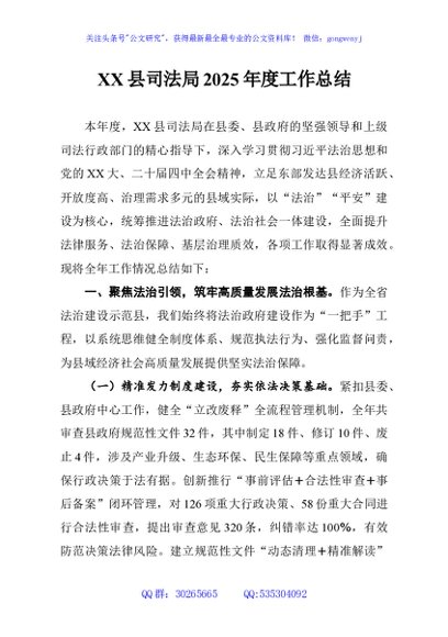 / XX县司法局2025年度工作总结