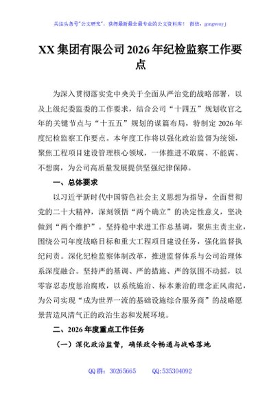 / XX集团有限公司2026年纪检监察工作要点