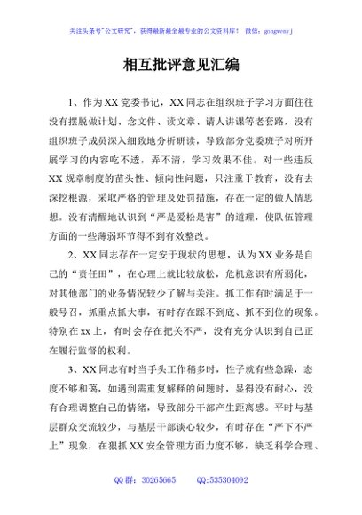 相互批评意见汇编