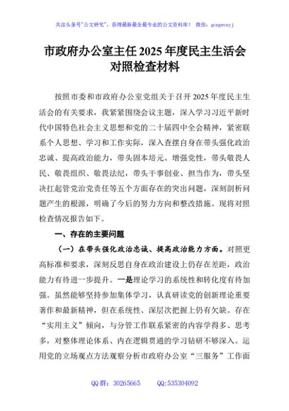 / 市政府办公室主任2025年度民主生活会对照检查材料