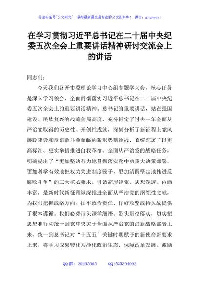 / 在学习贯彻习近平总书记在二十届中央纪委五次全会上重要讲话精神研讨交流会上的讲话