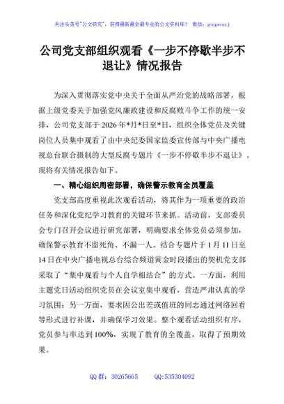 / 公司党支部组织观看《一步不停歇半步不退让》情况报告