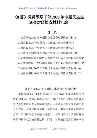 / (8篇)党员领导干部2025年专题民主生活会对照检查材料汇编