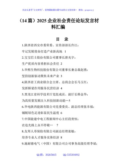 / (14篇)2025企业社会责任论坛发言材料汇编