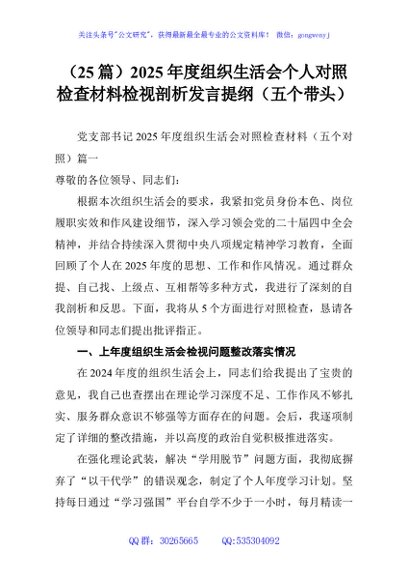 / (25篇)2025年度组织生活会个人对照检查材料检视剖析发言提纲(五个带头)