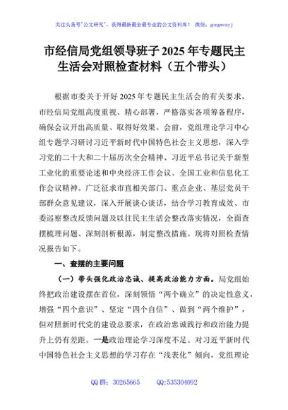 / 市经信局党组领导班子2025年专题民主生活会对照检查材料(五个带头)