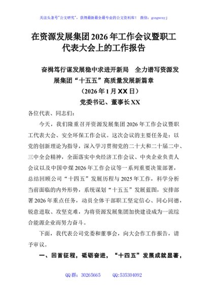 / 在资源发展集团2026年工作会议暨职工代表大会上的工作报告