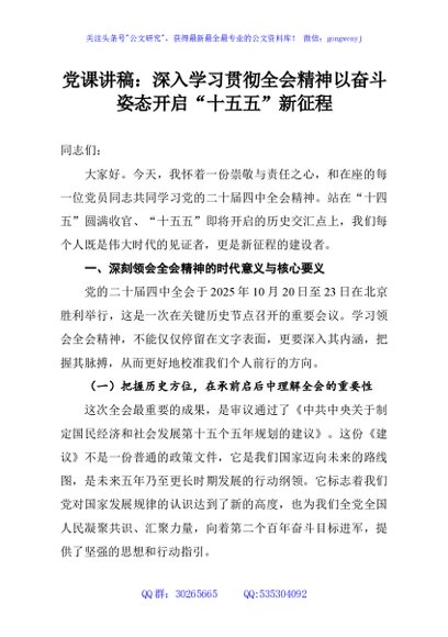 / 党课讲稿:深入学习贯彻全会精神以奋斗姿态开启“十五五”新征程