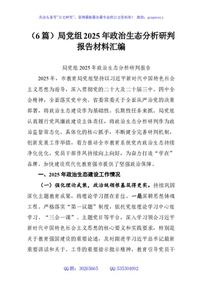 / (6篇)局党组2025年政治生态分析研判报告材料汇编