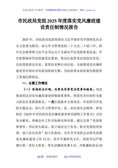/ 市民政局党组2025年度落实党风廉政建设责任制情况报告