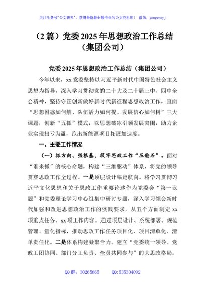 / (2篇)党委2025年思想政治工作总结(集团公司)