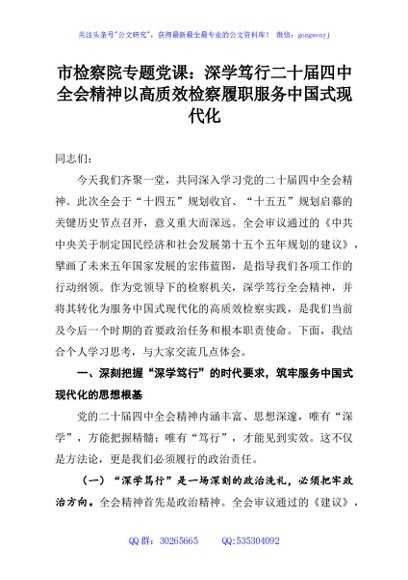 / 市检察院专题党课:深学笃行二十届四中全会精神以高质效检察履职服务中国式现代化