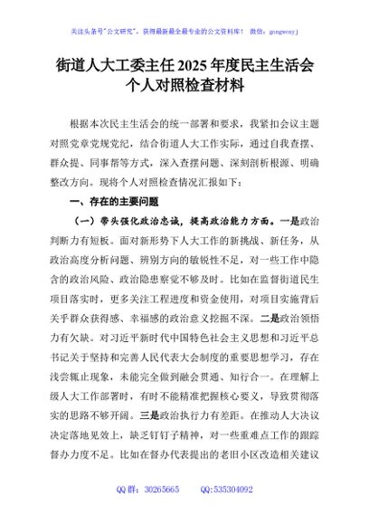 / 街道人大工委主任2025年度民主生活会个人对照检查材料