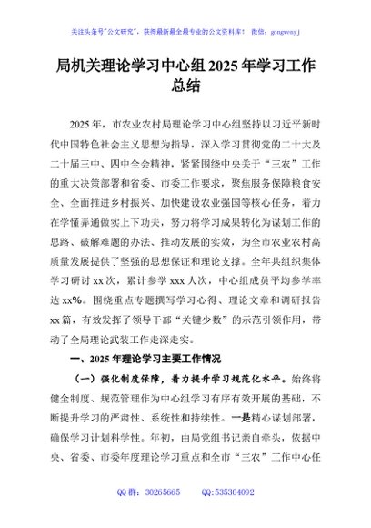 / 局机关理论学习中心组2025年学习工作总结
