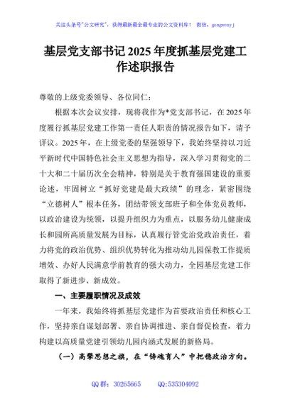 / 基层党支部书记2025年度抓基层党建工作述职报告