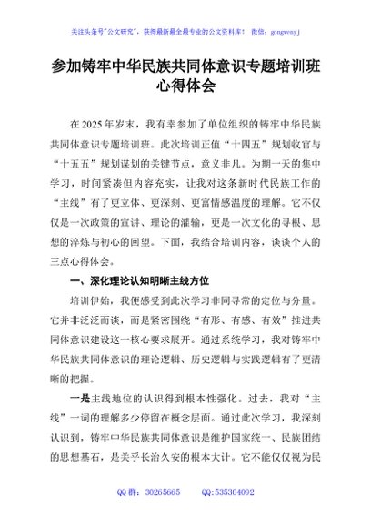 / 参加铸牢中华民族共同体意识专题培训班心得体会