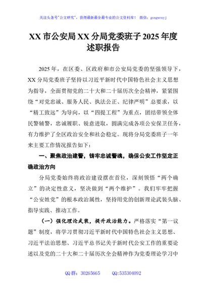 / XX市公安局XX分局党委班子2025年度述职报告