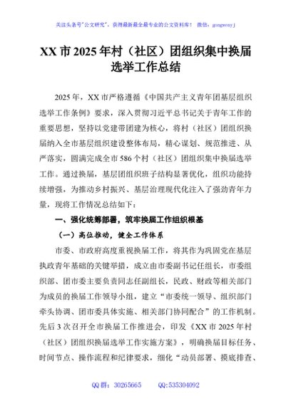 / XX市2025年村(社区)团组织集中换届选举工作总结
