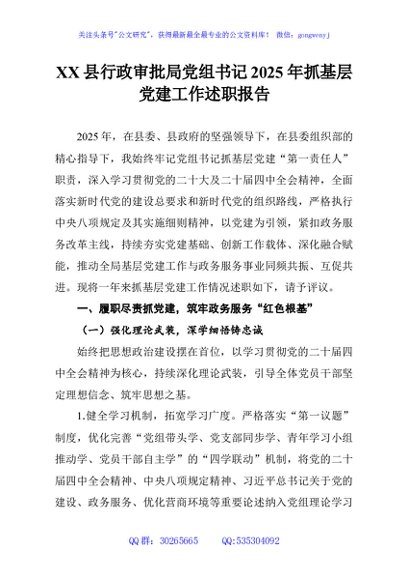 / XX县行政审批局党组书记2025年抓基层党建工作述职报告
