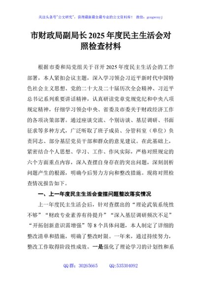 / 市财政局副局长2025年度民主生活会对照检查材料