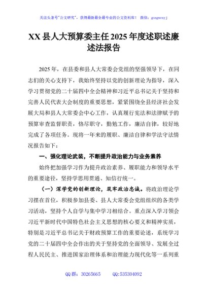 / XX县人大预算委主任2025年度述职述廉述法报告