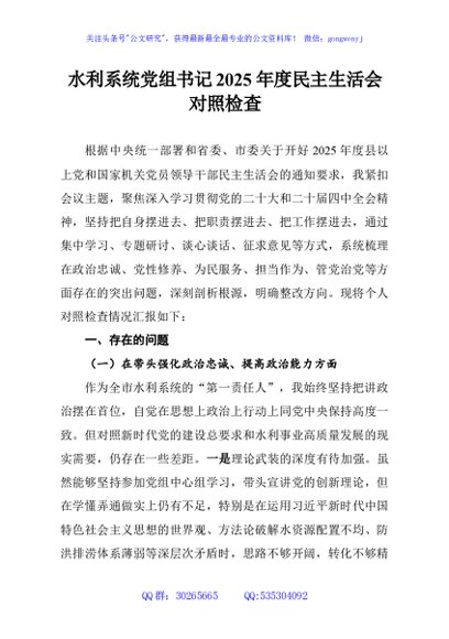 / 水利系统党组书记2025年度民主生活会对照检查
