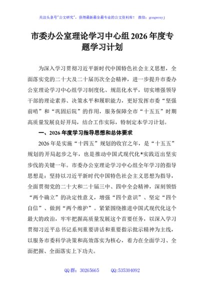 / 市委办公室理论学习中心组2026年度专题学习计划
