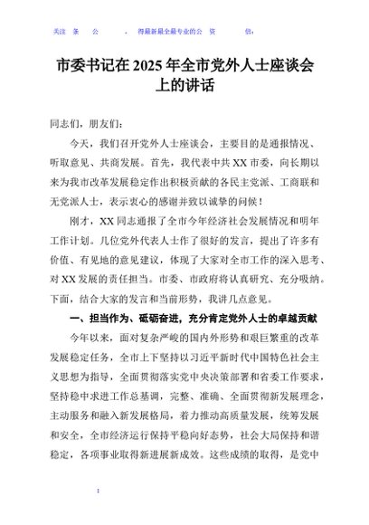 / 市委书记在2025年全市党外人士座谈会上的讲话