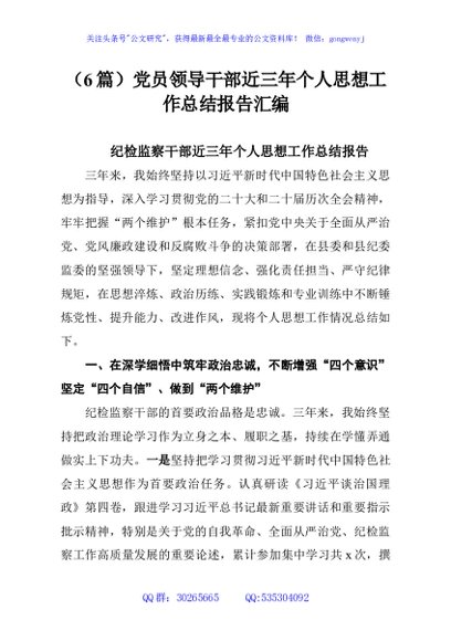 / (6篇)党员领导干部近三年个人思想工作总结报告汇编