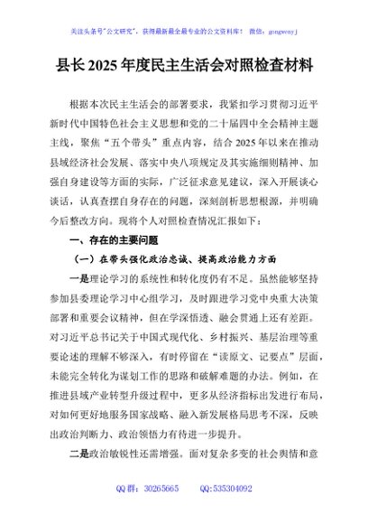 / 县长2025年度民主生活会对照检查材料
