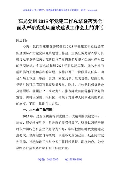 / 在局党组2025年党建工作总结暨落实全面从严治党党风廉政建设工作会上的讲话