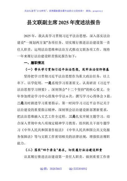 / 县文联副主席2025年度述法报告