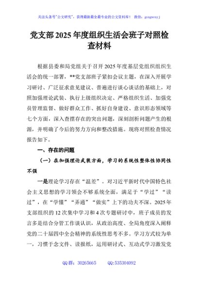 县工商联领导班子2025年度民主生活会对照检查材料(五个带头)