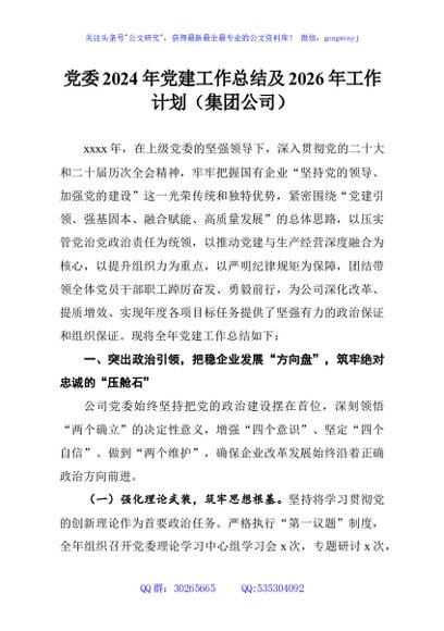 / 党委2024年党建工作总结及2026年工作计划(集团公司)