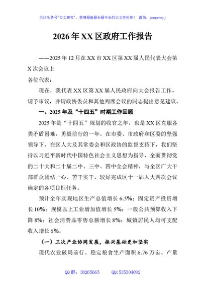 / 2026年XX区政府工作报告