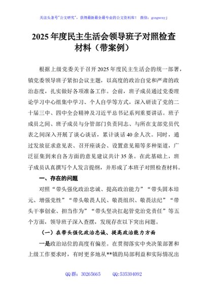 / 2025年度民主生活会领导班子对照检查材料(带案例)